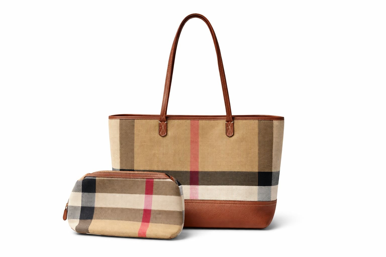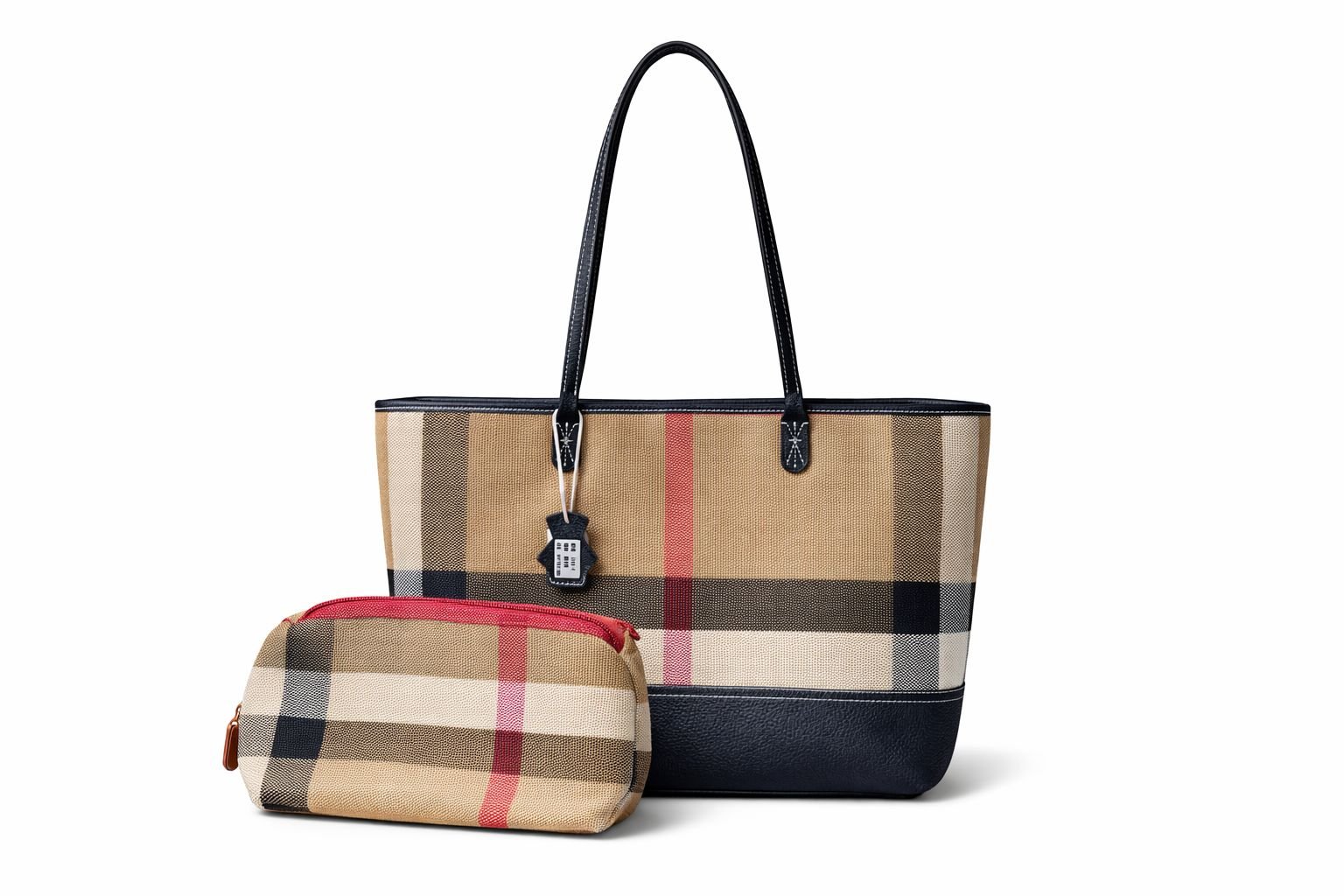 A spacious tote bag designed for everyday practicality and timeless style. Featuring a structured silhouette with a signature check pattern, this bag offers comfortable shoulder straps and a roomy interior suitable for daily essentials, work items, or travel needs. Comes with a matching zip pouch for organized storage of smaller items. A versatile piece that combines functionality with a refined, classic look.