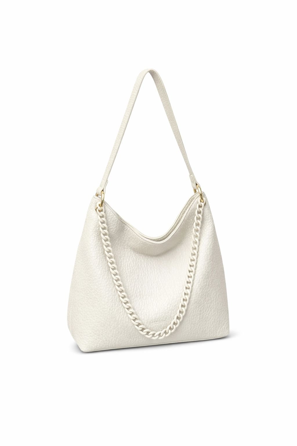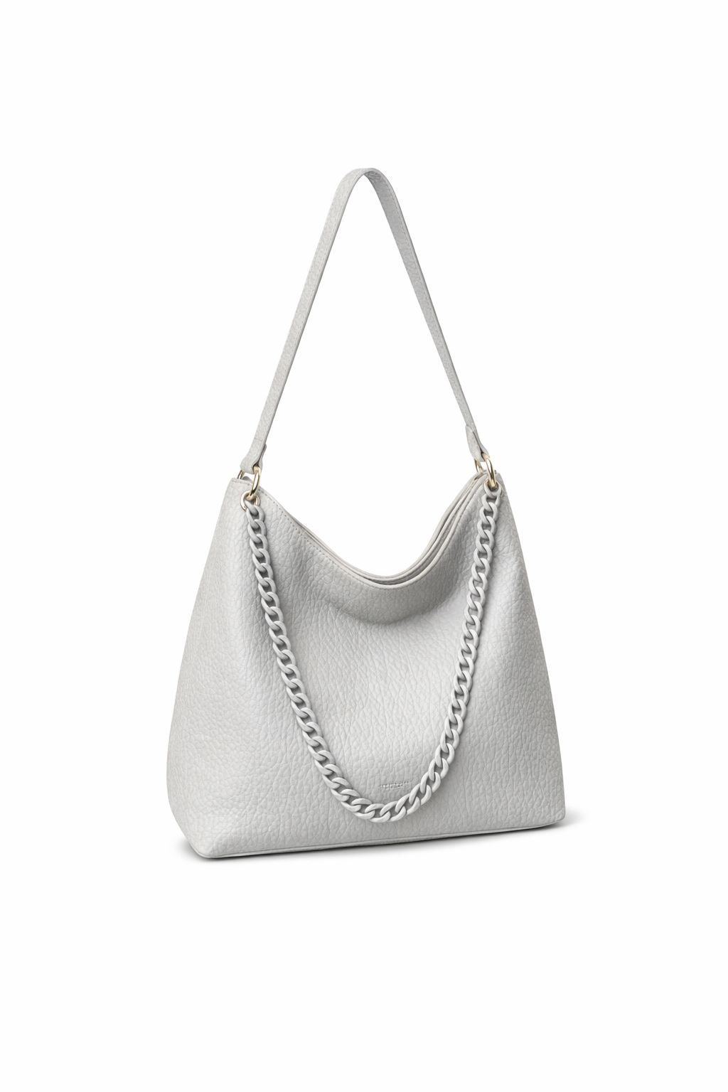 A modern hobo-style bag designed for everyday elegance. Crafted with a soft, textured finish and a relaxed silhouette, this bag features a comfortable shoulder strap paired with a stylish chain detail for a refined touch. The spacious interior offers practical storage for daily essentials, making it suitable for work, casual outings, or evening wear. A versatile design that blends functionality with timeless style.