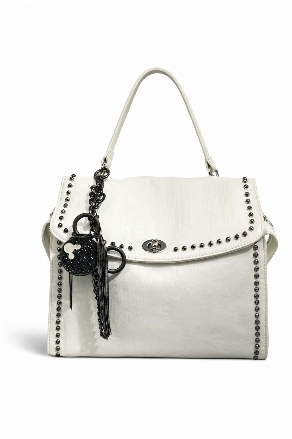 The Ivory Luxe Bag is an elegant women’s handbag designed for modern daily wear. Crafted from premium soft leather-look material, this bag features stylish metal stud detailing and a secure twist-lock closure for both beauty and safety. Its comfortable top handle makes it easy to carry, while the spacious interior offers enough room for essentials like your phone, wallet, makeup, and more.